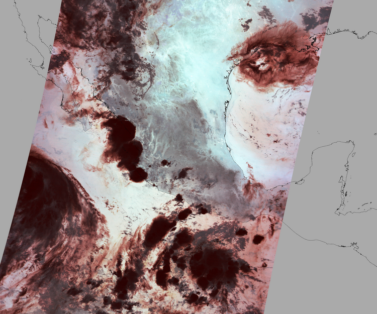 Nubosidad en el terreno:14% Nubosidad sobre México:13% Datos nulos en la escena:28% Datos nulos sobre México:15% |
