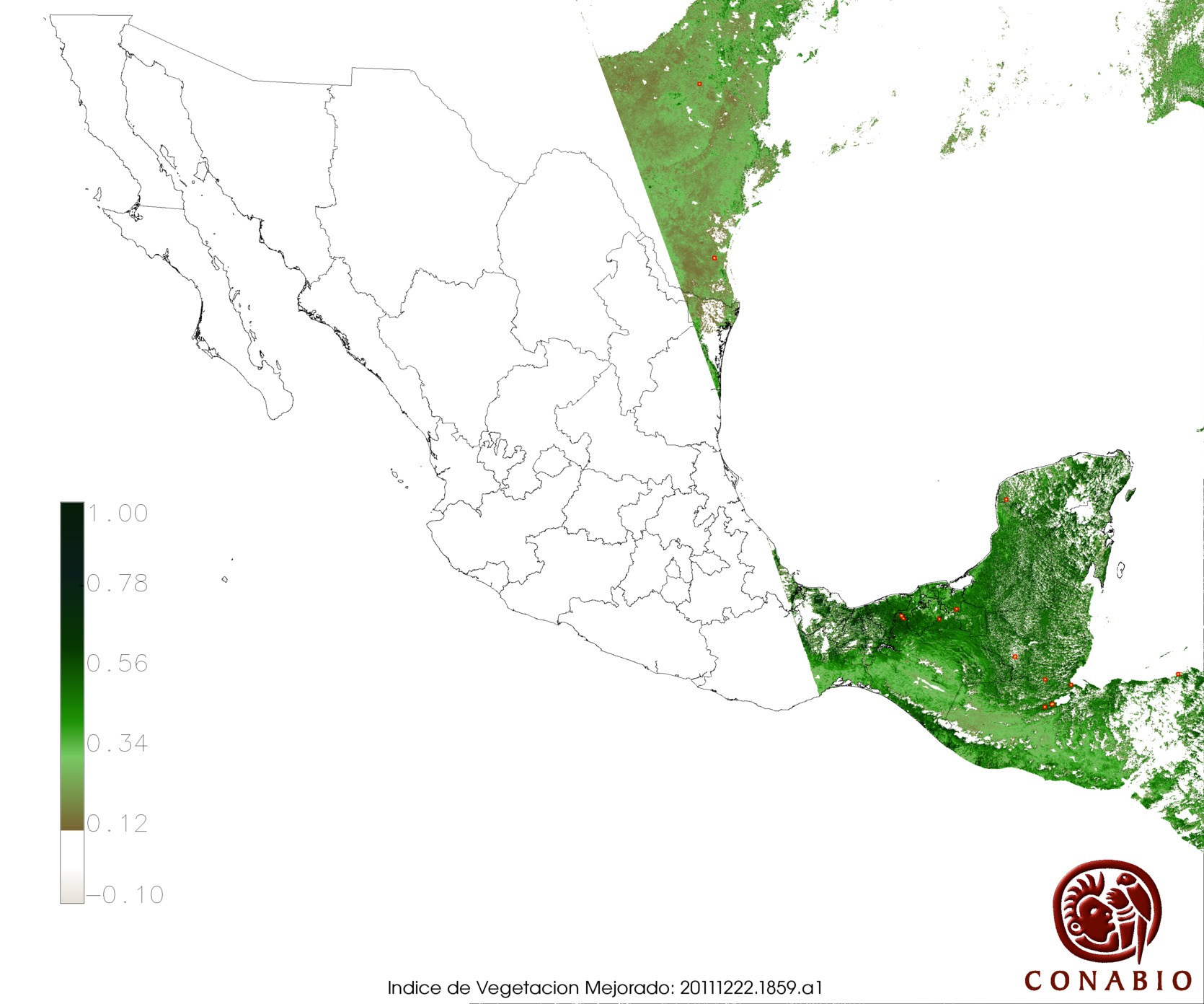 Los valores del índice van de -1 a 1, entre más cercano al valor 1 la vegetación presenta mayor vigor. Los índices de vegetación son utilizados para conocer el comportamiento de la vegetación tanto espacial como temporal. |