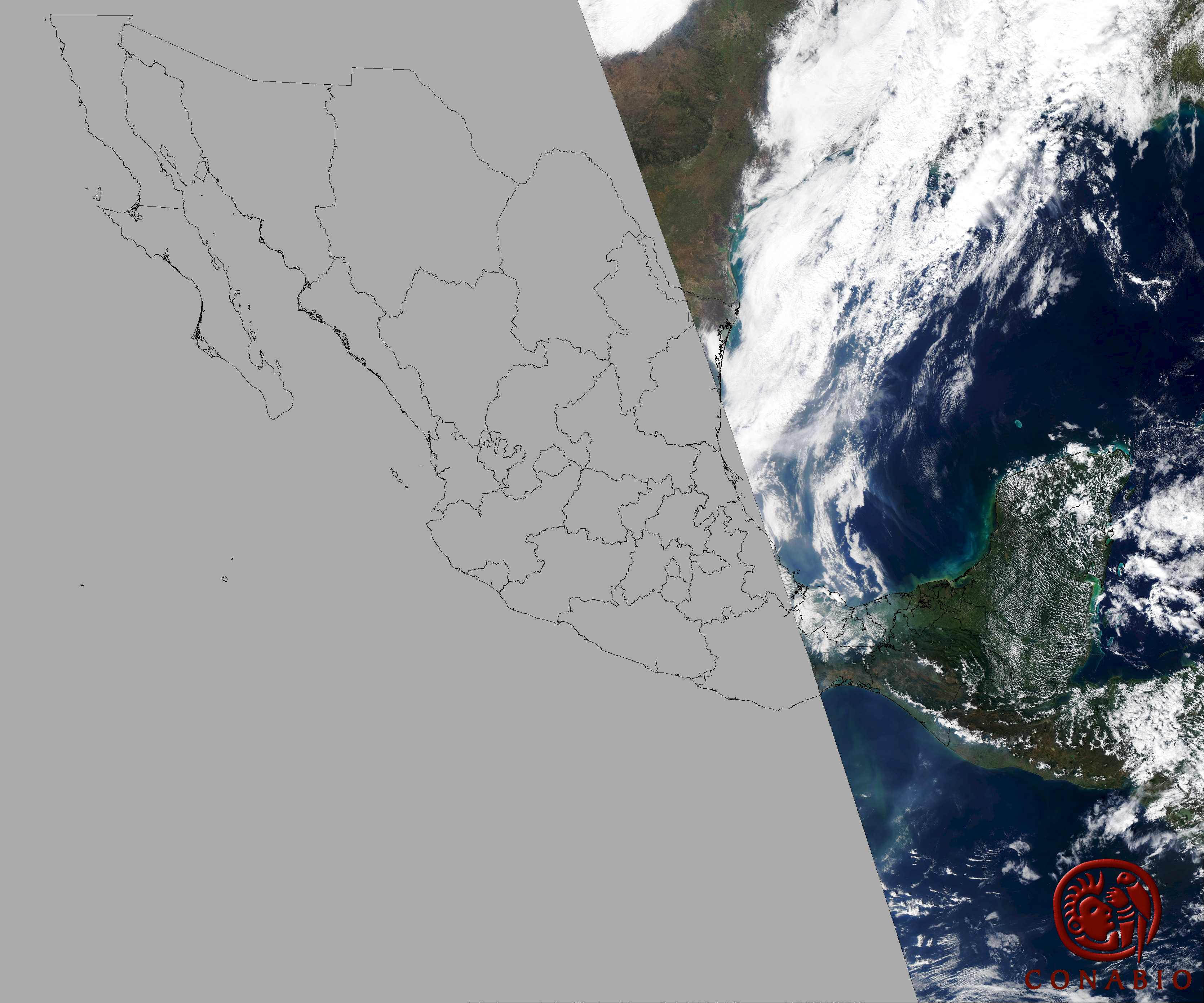 Nubosidad en el terreno:14% Nubosidad sobre México:1% Datos nulos en la escena:0% Datos nulos sobre México:0% |
