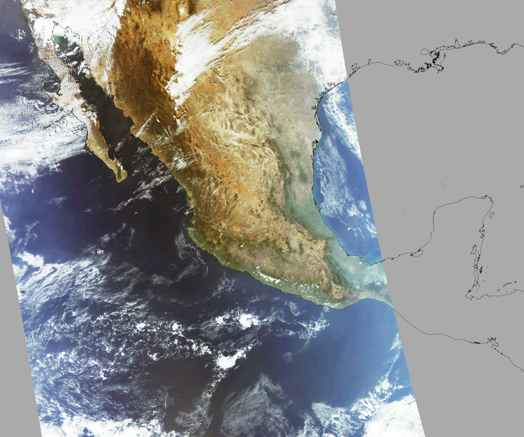 Nubosidad en el terreno:19% Nubosidad sobre México:9% Datos nulos en la escena:30% Datos nulos sobre México:11% |