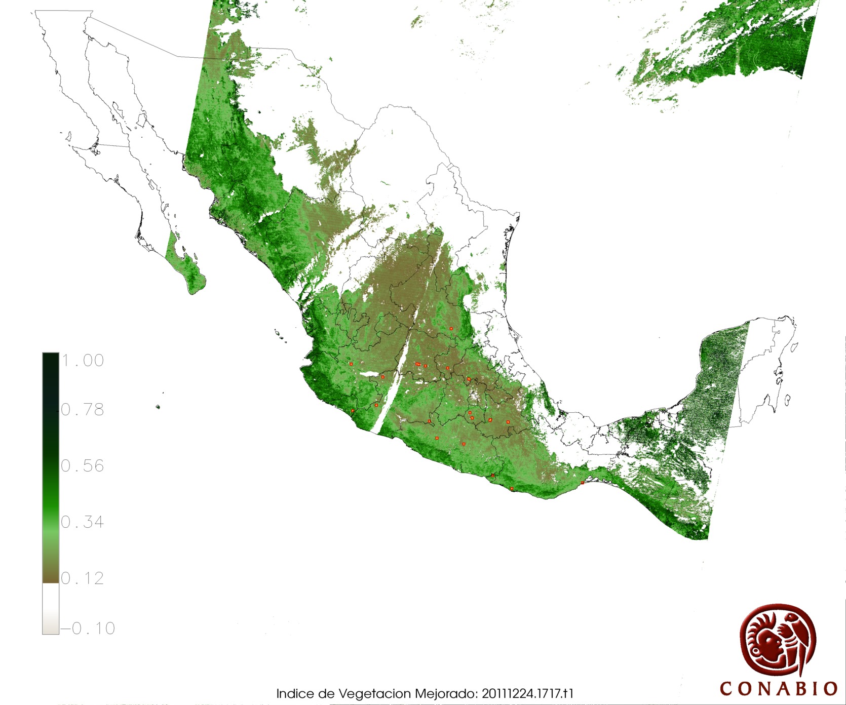 Nubosidad en el terreno:42% Nubosidad sobre México:30% Datos nulos en la escena:0% Datos nulos sobre México:0% |