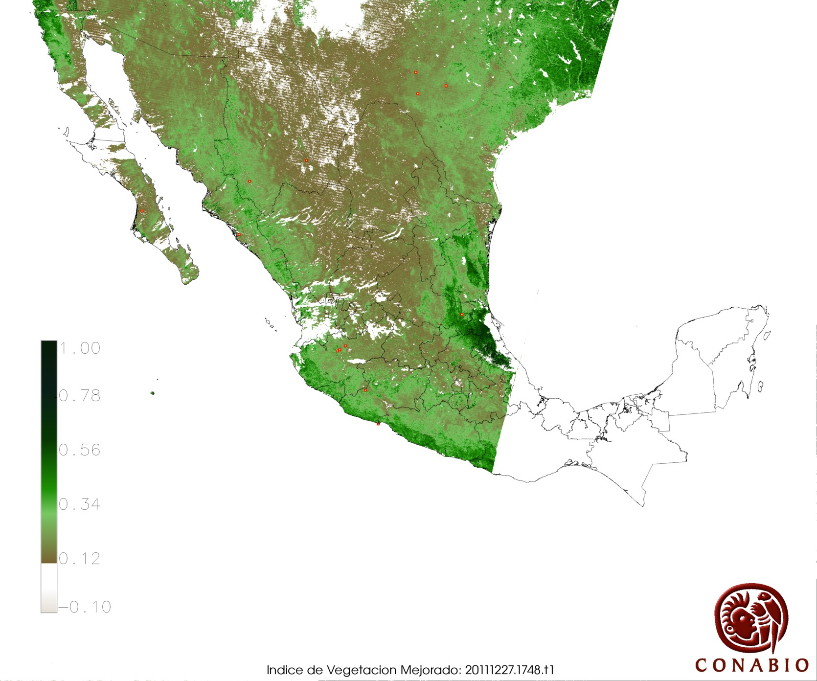 Los valores del índice van de -1 a 1, entre más cercano al valor 1 la vegetación presenta mayor vigor. Los índices de vegetación son utilizados para conocer el comportamiento de la vegetación tanto espacial como temporal. |