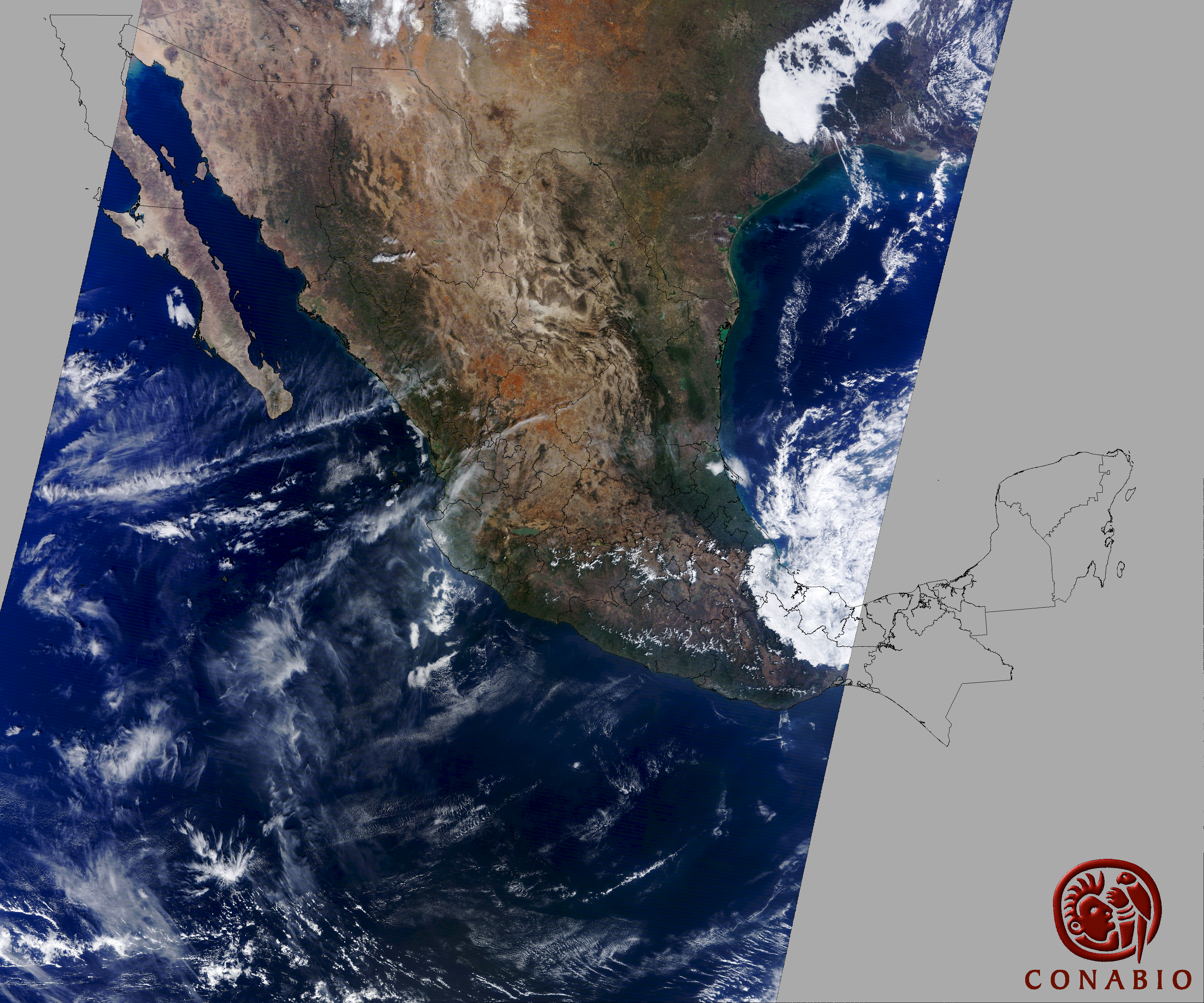 Nubosidad en el terreno:5% Nubosidad sobre México:3% Datos nulos en la escena:0% Datos nulos sobre México:0% |