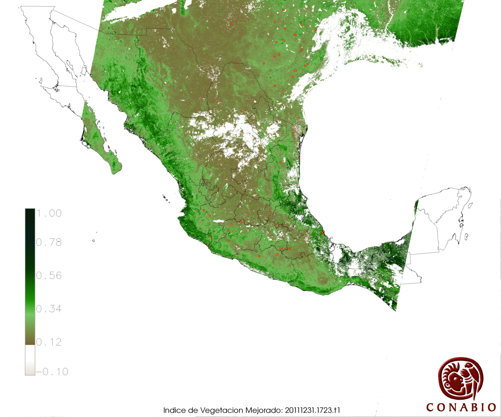 Los valores del índice van de -1 a 1, entre más cercano al valor 1 la vegetación presenta mayor vigor. Los índices de vegetación son utilizados para conocer el comportamiento de la vegetación tanto espacial como temporal. |