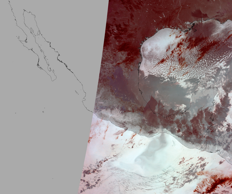 Nubosidad en el terreno:6% Nubosidad sobre México:4% Datos nulos en la escena:40% Datos nulos sobre México:43% |