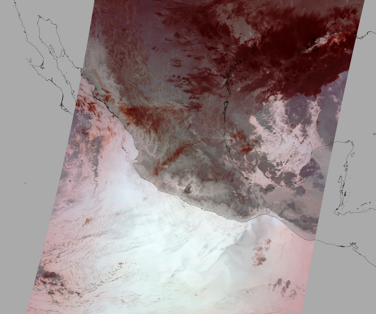 Nubosidad en el terreno:18% Nubosidad sobre México:3% Datos nulos en la escena:28% Datos nulos sobre México:15% |