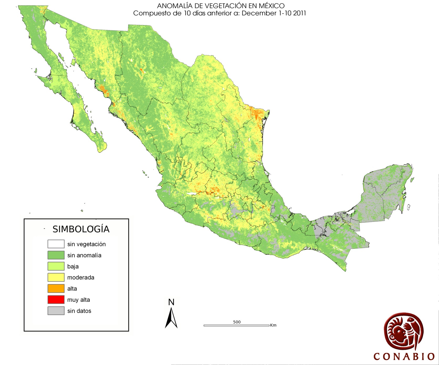 Los valores del índice van de -1 a 1, entre más cercano al valor 1 la vegetación presenta mayor vigor. Los índices de vegetación son utilizados para conocer el comportamiento de la vegetación tanto espacial como temporal. |