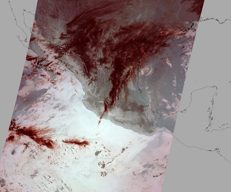 Nubosidad en el terreno:34% Nubosidad sobre México:31% Datos nulos en la escena:28% Datos nulos sobre México:15% |