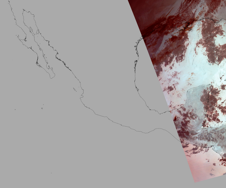 Nubosidad sobre el terreno:0% Nubosidad sobre México:0% Datos nulos en la escena:72% Datos nulos sobre México:90% |