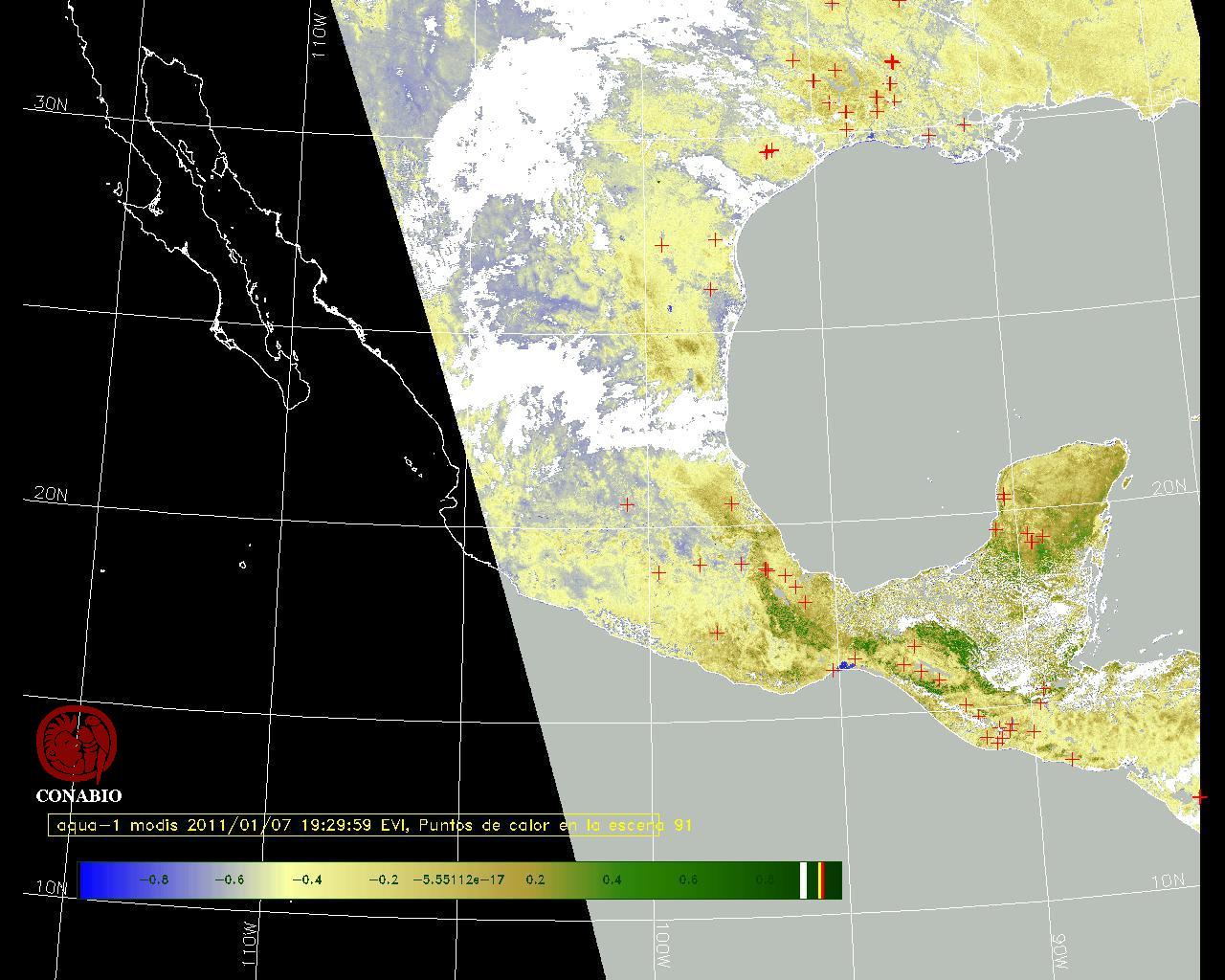 Se considera como punto de calor al elemento espacial mínimo de la imagen (pixel) que reporta una temperatura elevada. Para las imágenes diurnas la temperatura mínima considera es de 42 C y para las imágenes nocturnas es de 25 C. |
