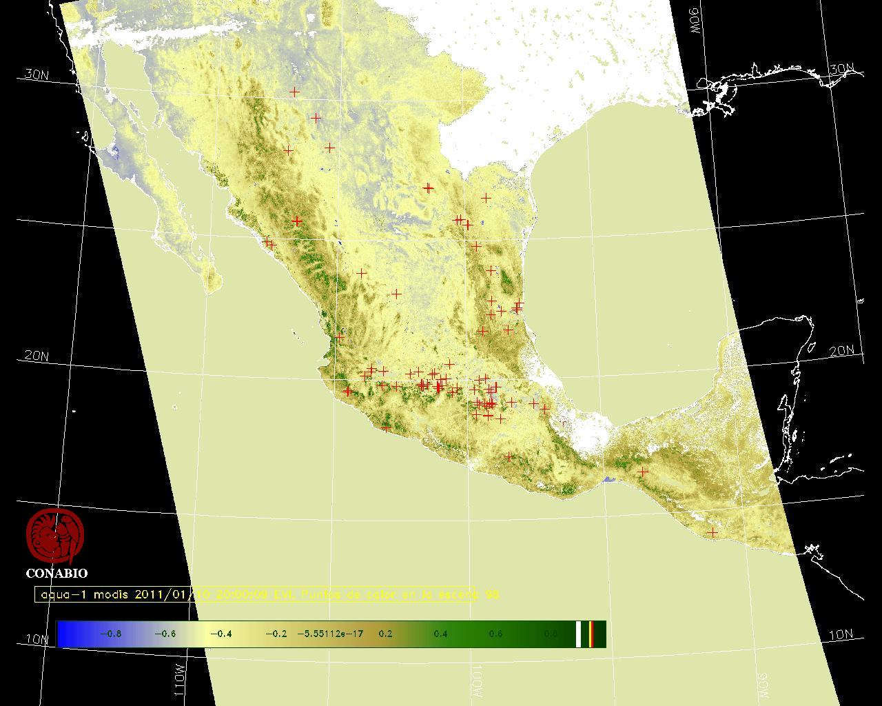 Se considera como punto de calor al elemento espacial mínimo de la imagen (pixel) que reporta una temperatura elevada. Para las imágenes diurnas la temperatura mínima considera es de 42 C y para las imágenes nocturnas es de 25 C. |