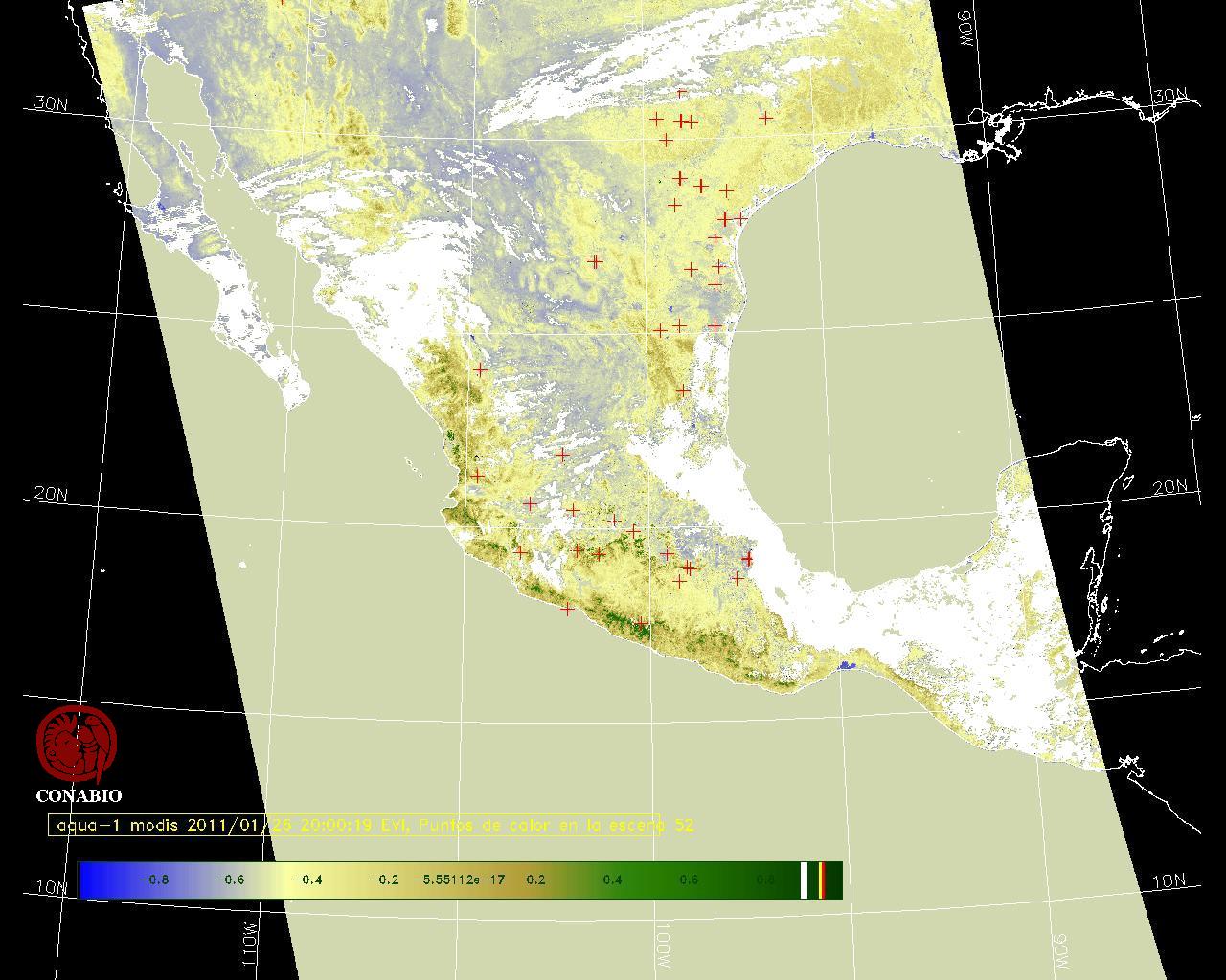 Se considera como punto de calor al elemento espacial mínimo de la imagen (pixel) que reporta una temperatura elevada. Para las imágenes diurnas la temperatura mínima considera es de 42 C y para las imágenes nocturnas es de 25 C. |