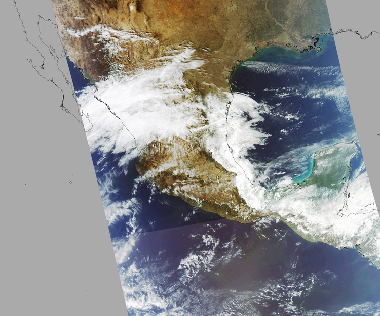 Nubosidad en el terreno:32% Nubosidad sobre México:44% Datos nulos en la escena:29% Datos nulos sobre México:7% |