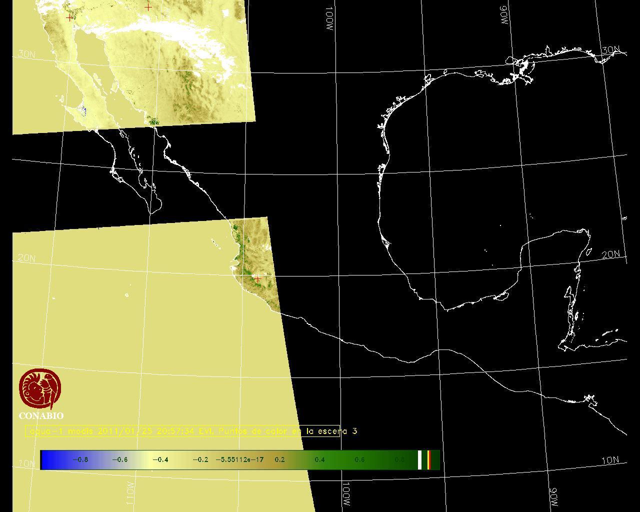 Se considera como punto de calor al elemento espacial mínimo de la imagen (pixel) que reporta una temperatura elevada. Para las imágenes diurnas la temperatura mínima considera es de 42 C y para las imágenes nocturnas es de 25 C. |