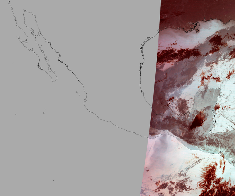Nubosidad sobre el terreno:4% Nubosidad sobre México:1% Datos nulos en la escena:64% Datos nulos sobre México:83% |