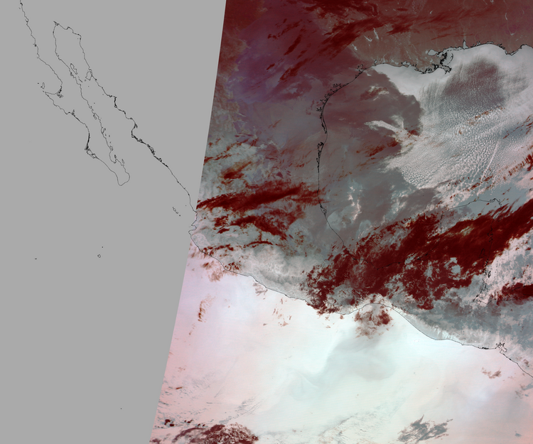 Nubosidad en el terreno:29% Nubosidad sobre México:25% Datos nulos en la escena:35% Datos nulos sobre México:35% |