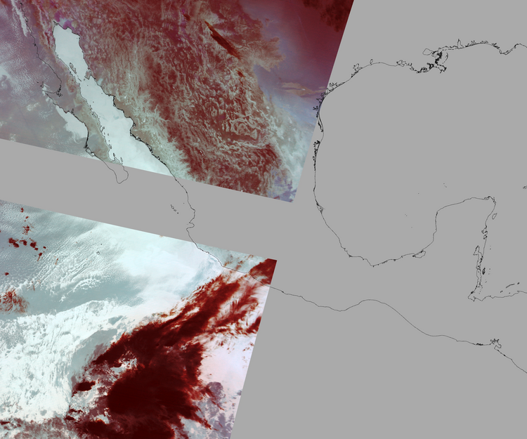 Nubosidad sobre el terreno:2% Nubosidad sobre México:0% Datos nulos en la escena:45% Datos nulos sobre México:29% |