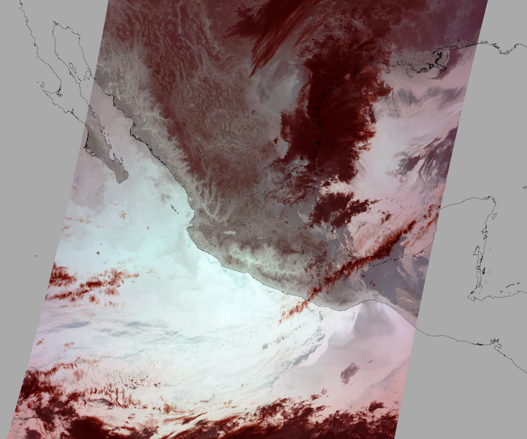 Nubosidad sobre el terreno:16% Nubosidad sobre México:4% Datos nulos en la escena:28% Datos nulos sobre México:14% |