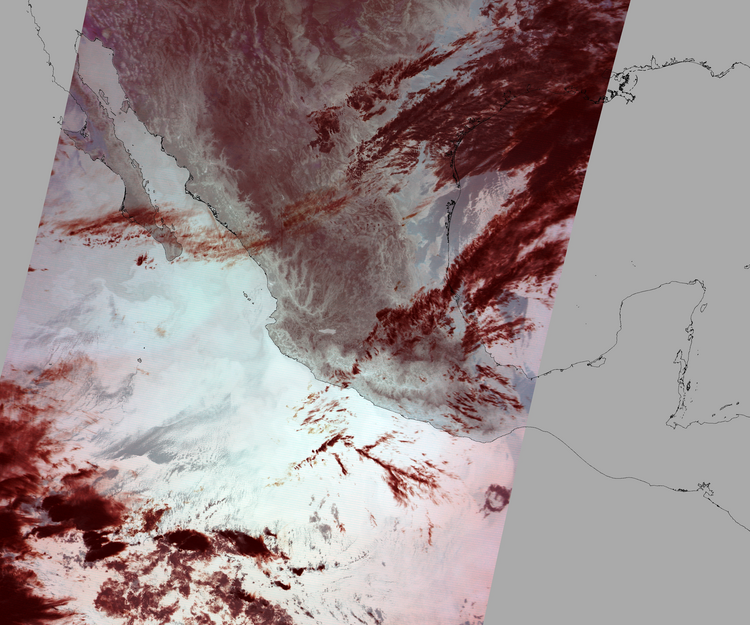 Nubosidad sobre el terreno:14% Nubosidad sobre México:5% Datos nulos en la escena:29% Datos nulos sobre México:15% |