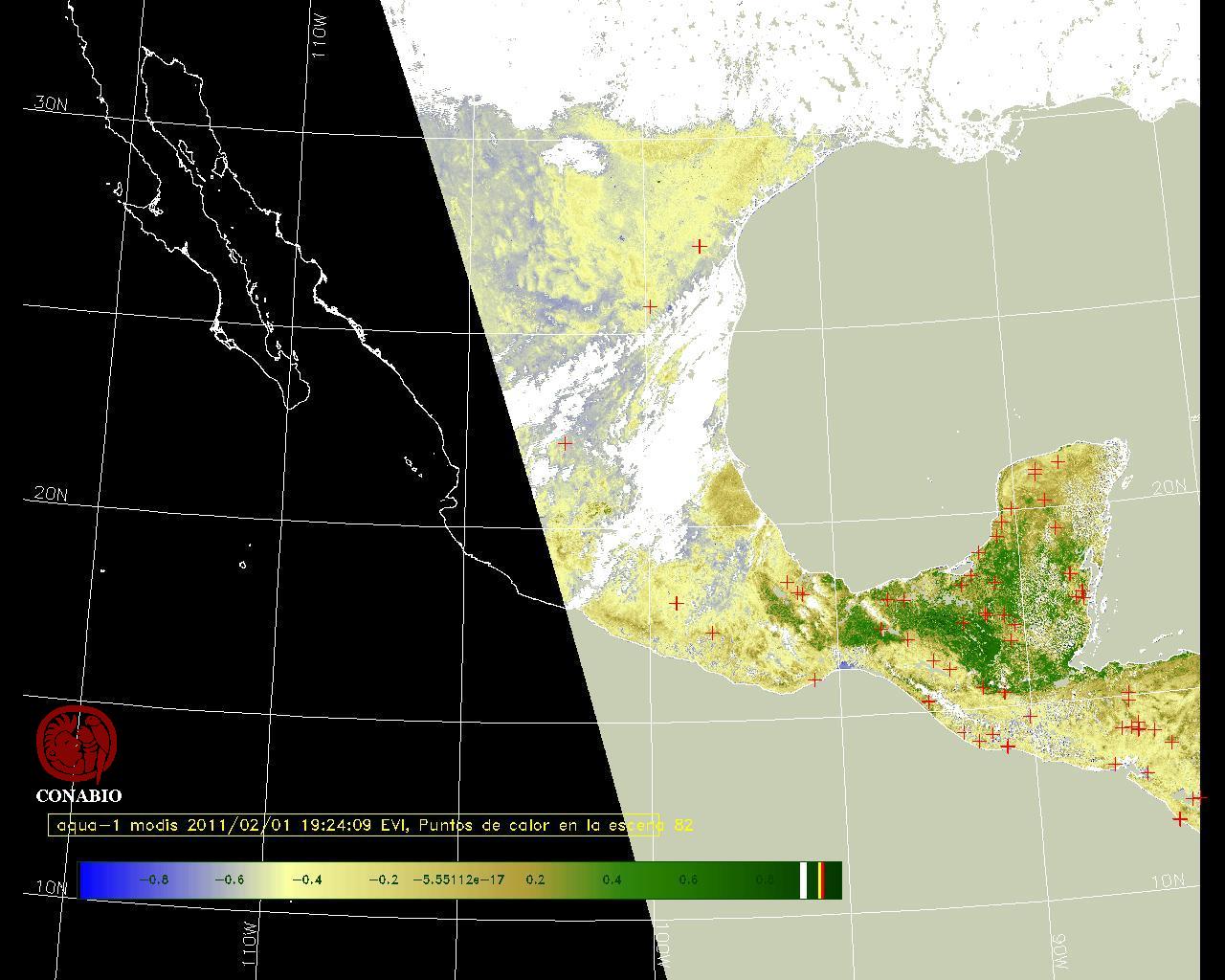 Se considera como punto de calor al elemento espacial mínimo de la imagen (pixel) que reporta una temperatura elevada. Para las imágenes diurnas la temperatura mínima considera es de 42 C y para las imágenes nocturnas es de 25 C. |