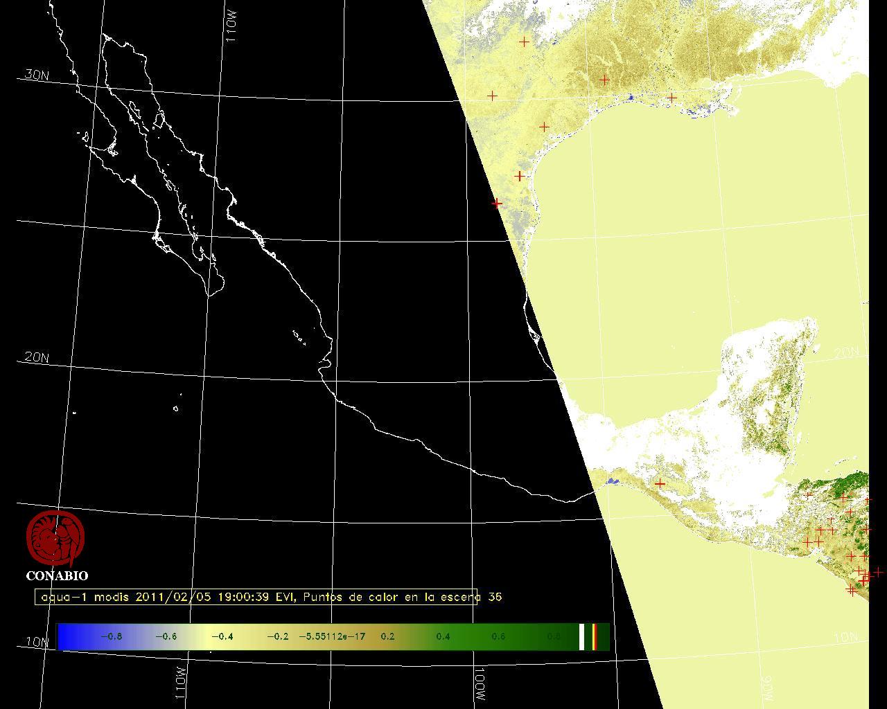 Se considera como punto de calor al elemento espacial mínimo de la imagen (pixel) que reporta una temperatura elevada. Para las imágenes diurnas la temperatura mínima considera es de 42 C y para las imágenes nocturnas es de 25 C. |