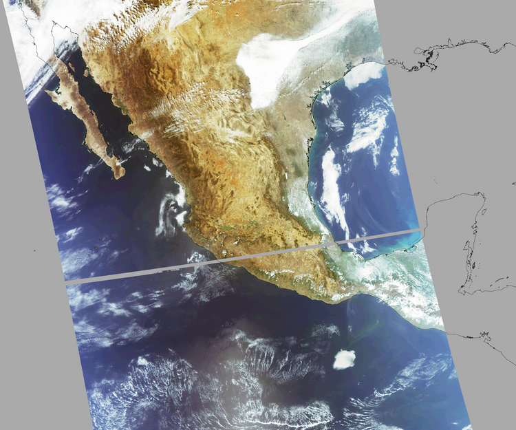 Nubosidad en el terreno:17% Nubosidad sobre México:8% Datos nulos en la escena:28% Datos nulos sobre México:6% |