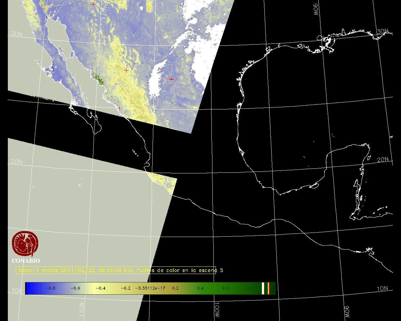 Se considera como punto de calor al elemento espacial mínimo de la imagen (pixel) que reporta una temperatura elevada. Para las imágenes diurnas la temperatura mínima considera es de 42 C y para las imágenes nocturnas es de 25 C. |