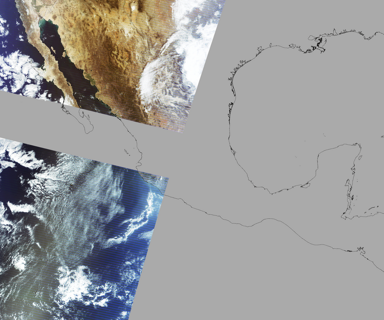 Nubosidad en el terreno:10% Nubosidad sobre México:6% Datos nulos en la escena:54% Datos nulos sobre México:44% |