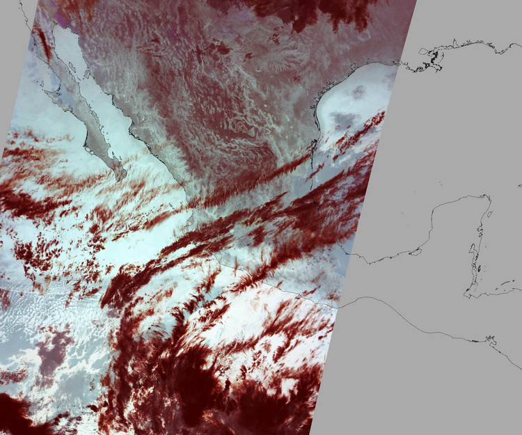 Nubosidad en el terreno:14% Nubosidad sobre México:13% Datos nulos en la escena:32% Datos nulos sobre México:15% |