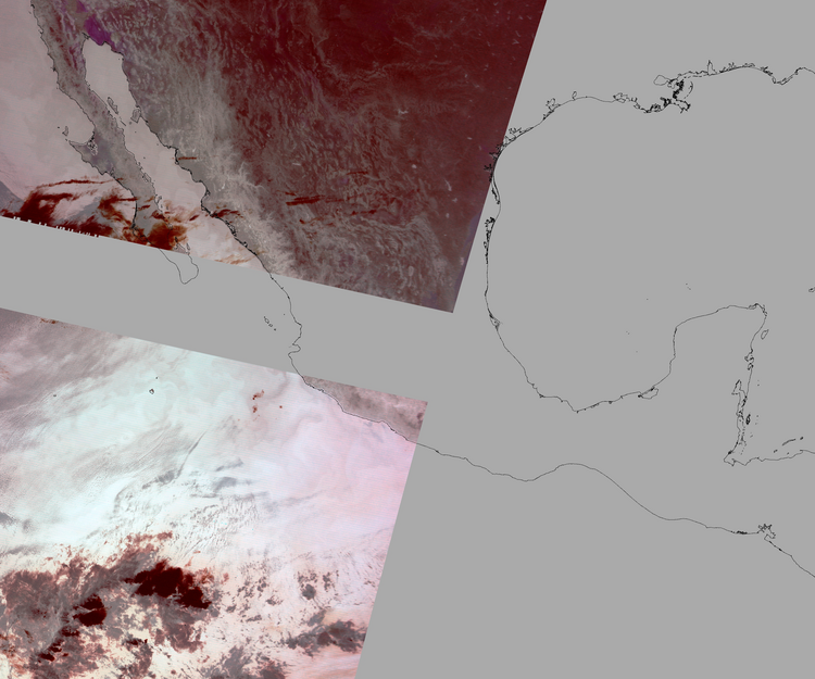 Nubosidad sobre el terreno:16% Nubosidad sobre México:3% Datos nulos en la escena:45% Datos nulos sobre México:29% |