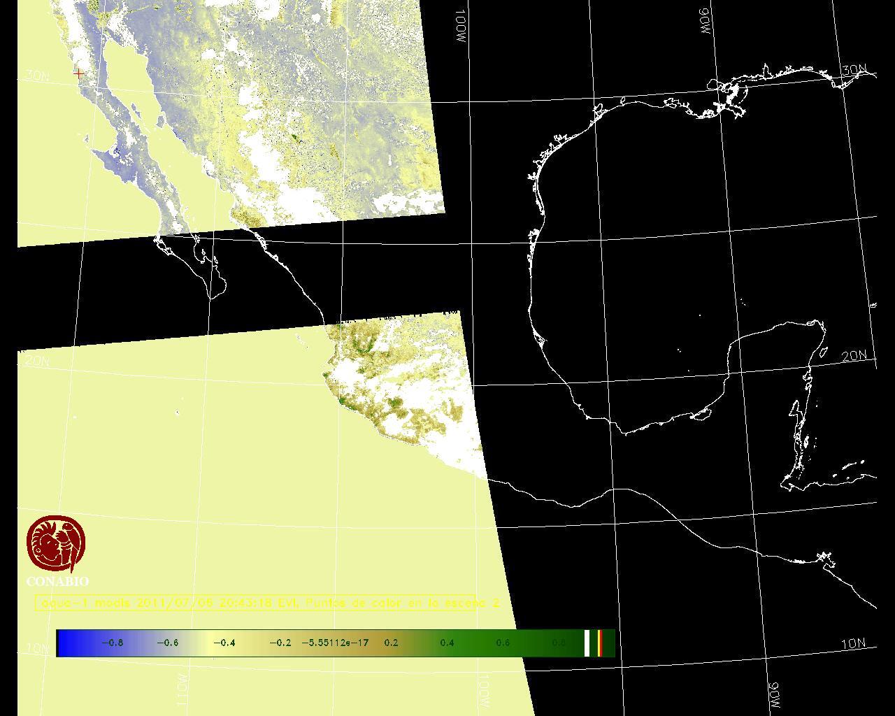 Se considera como punto de calor al elemento espacial mínimo de la imagen (pixel) que reporta una temperatura elevada. Para las imágenes diurnas la temperatura mínima considera es de 42 C y para las imágenes nocturnas es de 25 C. |