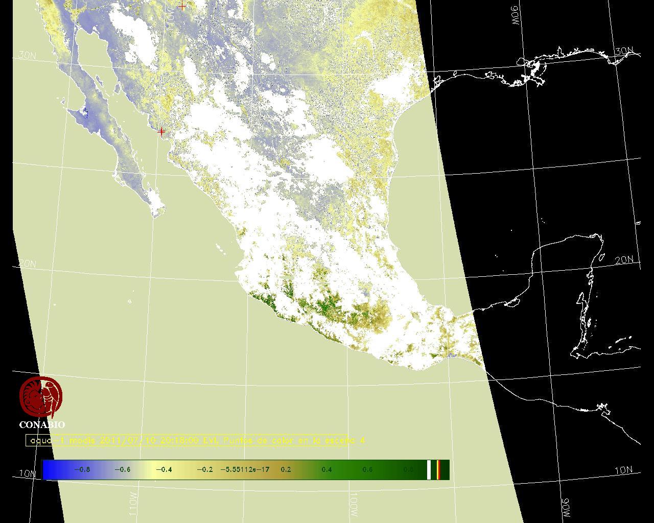 Nubosidad en el terreno:42% Nubosidad sobre México:51% Datos nulos en la escena:30% Datos nulos sobre México:11% |