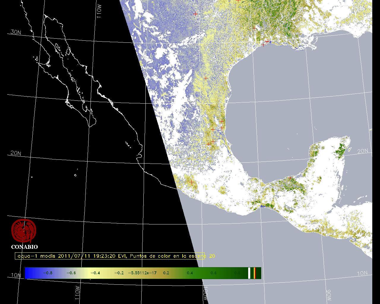 Se considera como punto de calor al elemento espacial mínimo de la imagen (pixel) que reporta una temperatura elevada. Para las imágenes diurnas la temperatura mínima considera es de 42 C y para las imágenes nocturnas es de 25 C. |