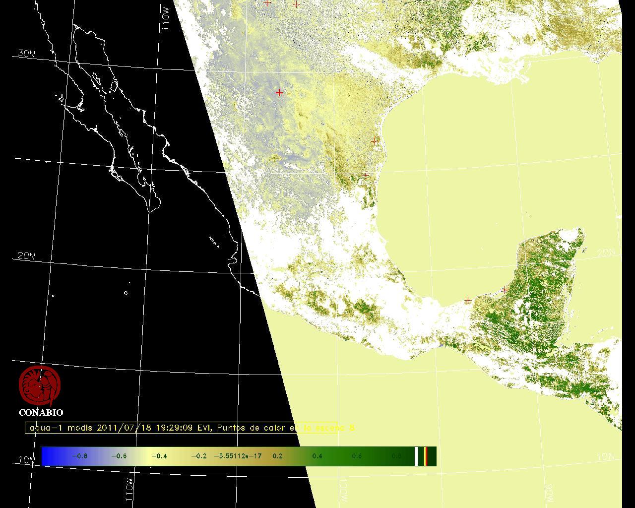 Se considera como punto de calor al elemento espacial mínimo de la imagen (pixel) que reporta una temperatura elevada. Para las imágenes diurnas la temperatura mínima considera es de 42 C y para las imágenes nocturnas es de 25 C. |