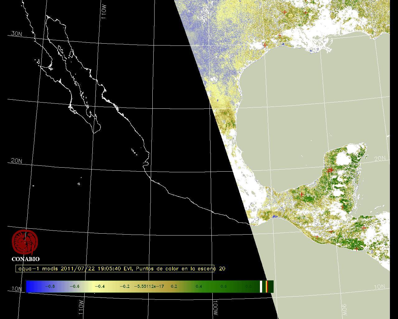 Se considera como punto de calor al elemento espacial mínimo de la imagen (pixel) que reporta una temperatura elevada. Para las imágenes diurnas la temperatura mínima considera es de 42 C y para las imágenes nocturnas es de 25 C. |