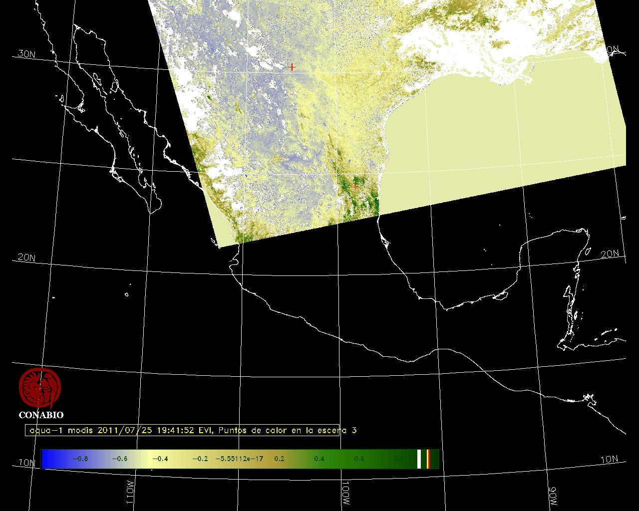 Se considera como punto de calor al elemento espacial mínimo de la imagen (pixel) que reporta una temperatura elevada. Para las imágenes diurnas la temperatura mínima considera es de 42 C y para las imágenes nocturnas es de 25 C. |
