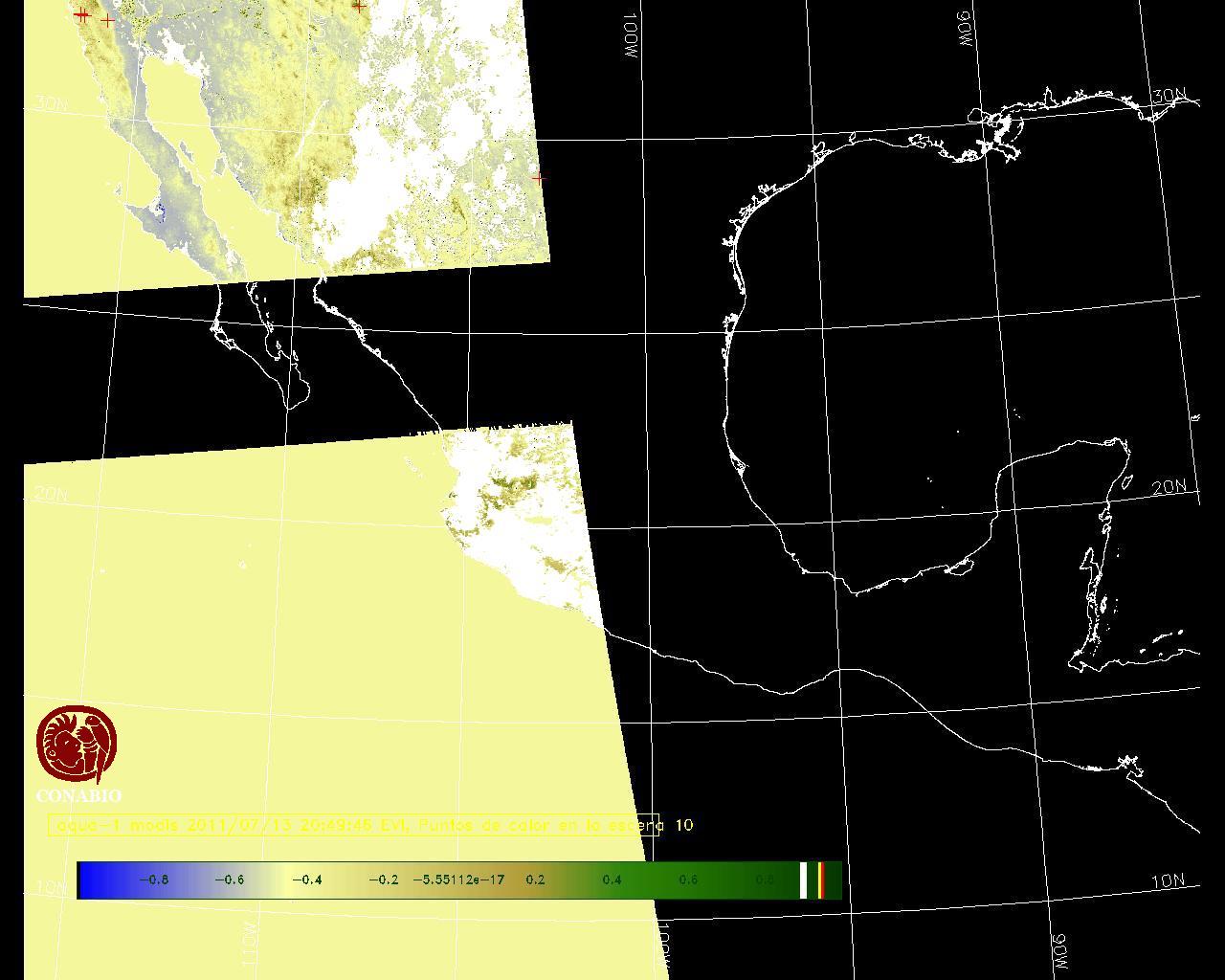 Se considera como punto de calor al elemento espacial mínimo de la imagen (pixel) que reporta una temperatura elevada. Para las imágenes diurnas la temperatura mínima considera es de 42 C y para las imágenes nocturnas es de 25 C. |