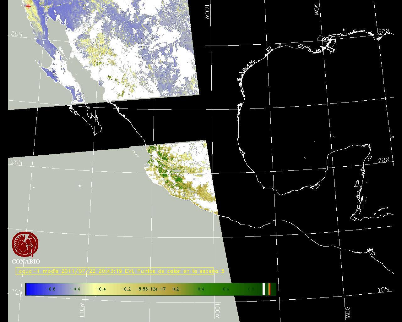 Se considera como punto de calor al elemento espacial mínimo de la imagen (pixel) que reporta una temperatura elevada. Para las imágenes diurnas la temperatura mínima considera es de 42 C y para las imágenes nocturnas es de 25 C. |
