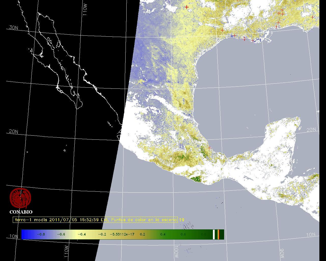 Se considera como punto de calor al elemento espacial mínimo de la imagen (pixel) que reporta una temperatura elevada. Para las imágenes diurnas la temperatura mínima considera es de 42 C y para las imágenes nocturnas es de 25 C. |
