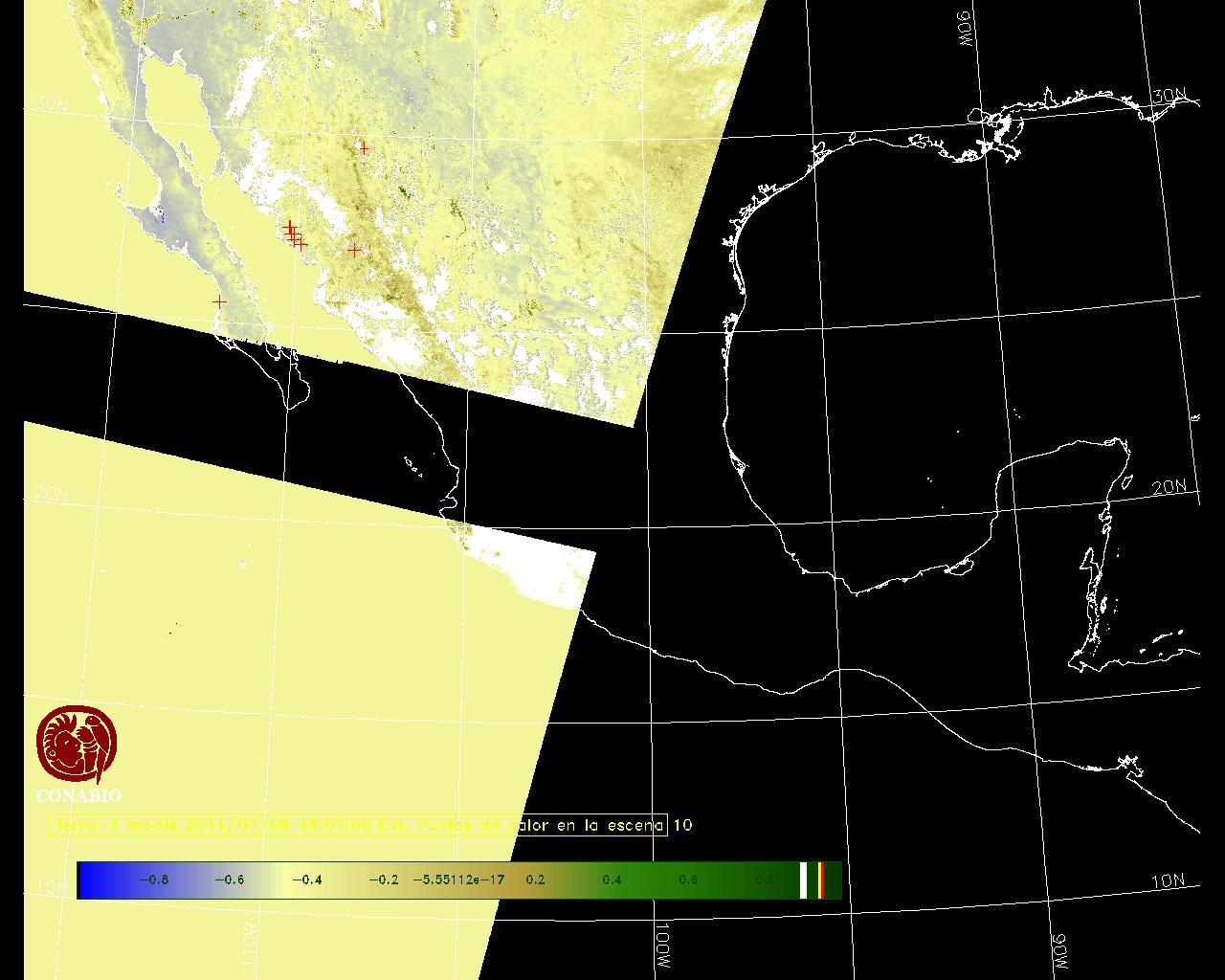 Se considera como punto de calor al elemento espacial mínimo de la imagen (pixel) que reporta una temperatura elevada. Para las imágenes diurnas la temperatura mínima considera es de 42 C y para las imágenes nocturnas es de 25 C. |