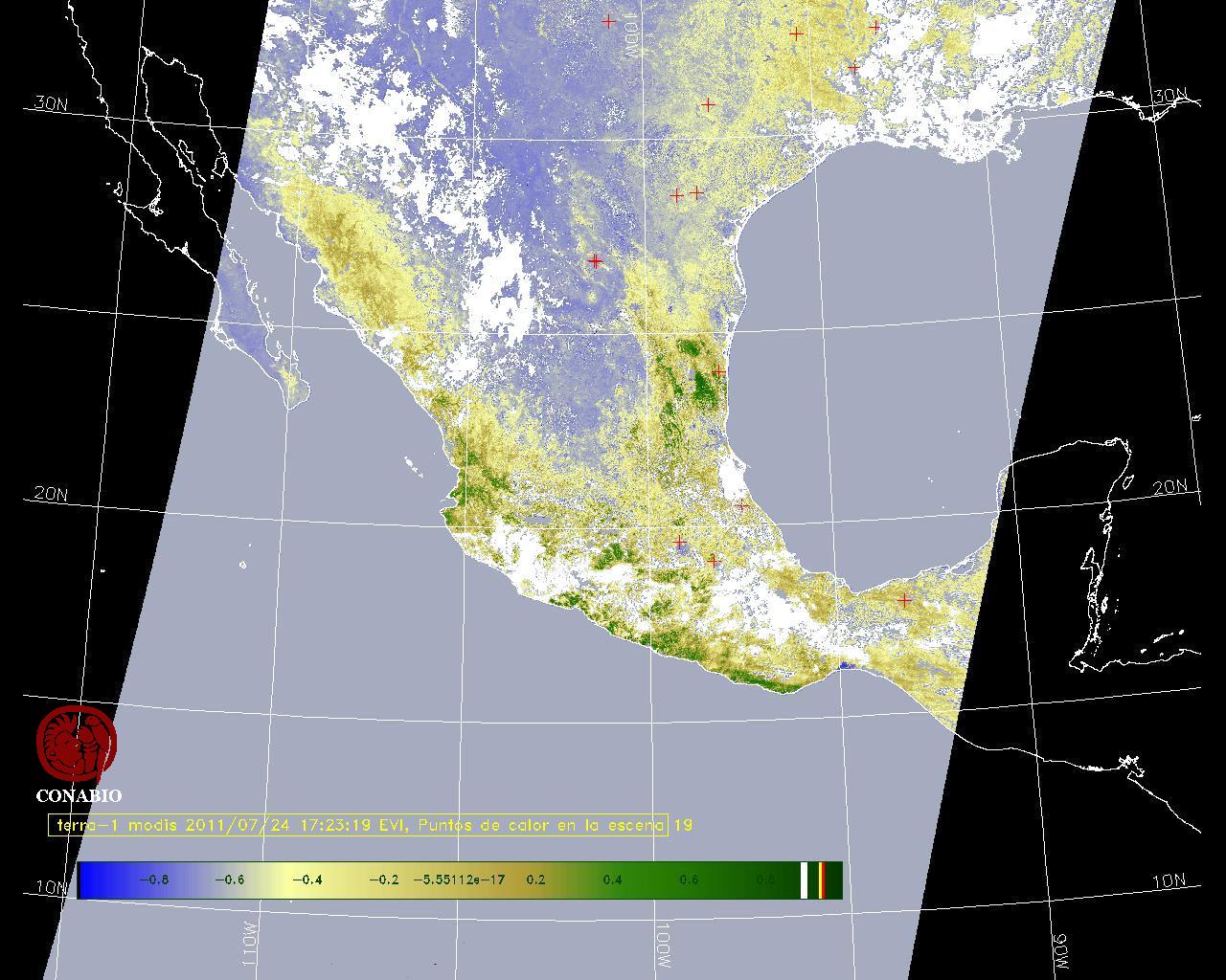 Nubosidad en el terreno:19% Nubosidad sobre México:19% Datos nulos en la escena:28% Datos nulos sobre México:14% |