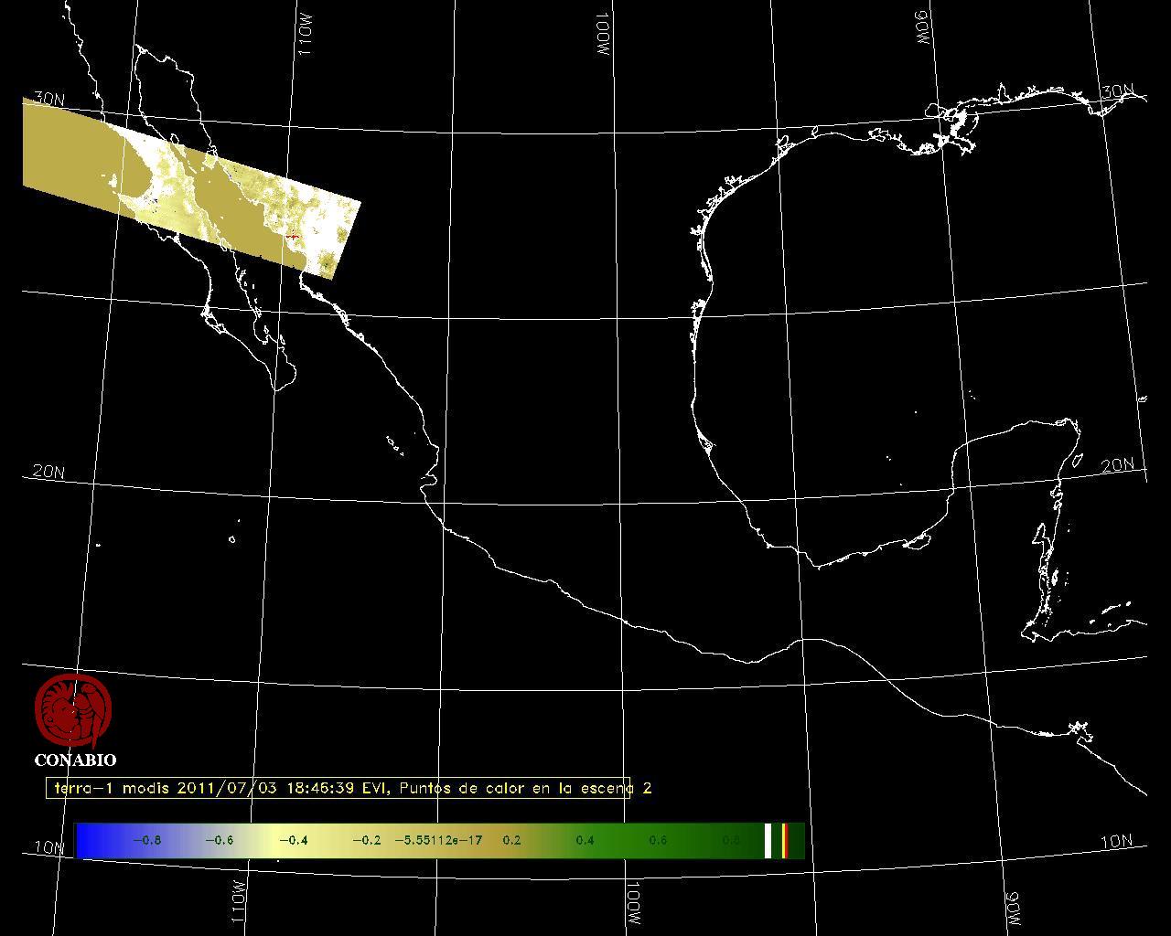 Se considera como punto de calor al elemento espacial mínimo de la imagen (pixel) que reporta una temperatura elevada. Para las imágenes diurnas la temperatura mínima considera es de 42 C y para las imágenes nocturnas es de 25 C. |