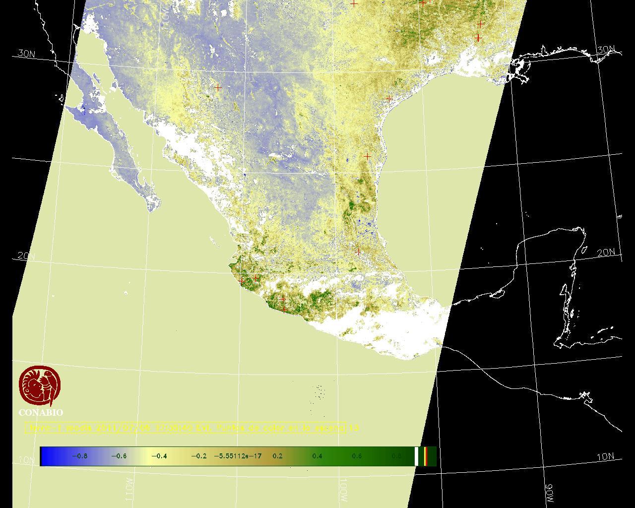 Los valores del índice van de -1 a 1, entre más cercano al valor 1 la vegetación presenta mayor vigor. Los índices de vegetación son utilizados para conocer el comportamiento de la vegetación tanto espacial como temporal. |