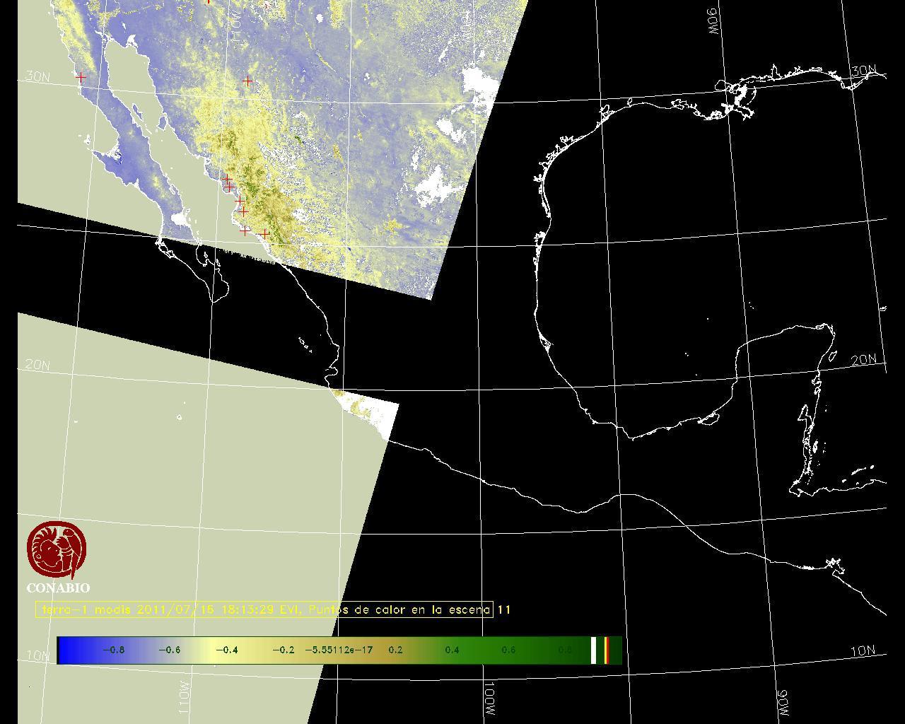 Se considera como punto de calor al elemento espacial mínimo de la imagen (pixel) que reporta una temperatura elevada. Para las imágenes diurnas la temperatura mínima considera es de 42 C y para las imágenes nocturnas es de 25 C. |