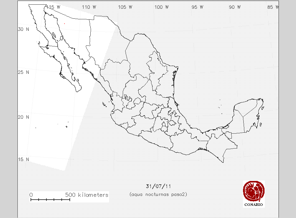 Se considera como punto de calor al elemento espacial mínimo de la imagen (pixel) que reporta una temperatura elevada. Para las imágenes diurnas la temperatura mínima considera es de 42 C y para las imágenes nocturnas es de 25 C. |