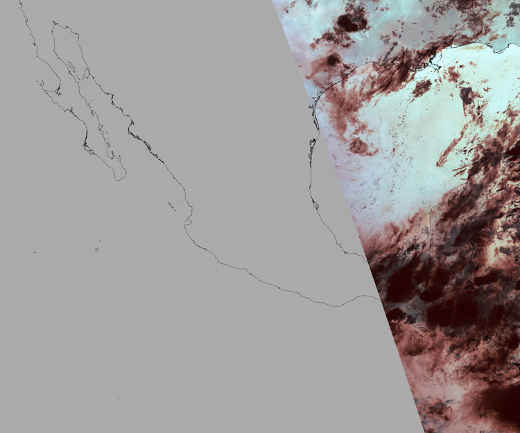 Nubosidad en el terreno:41% Nubosidad sobre México:67% Datos nulos en la escena:67% Datos nulos sobre México:87% |