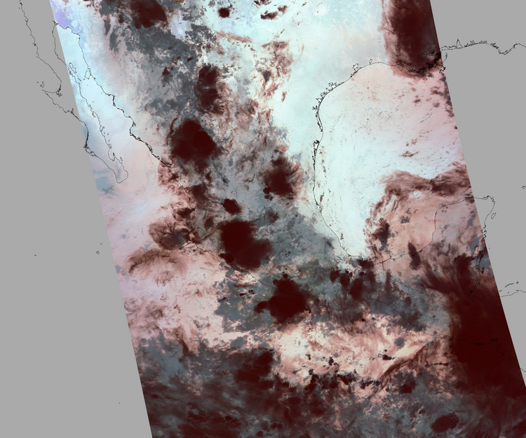 Nubosidad en el terreno:35% Nubosidad sobre México:37% Datos nulos en la escena:28% Datos nulos sobre México:5% |