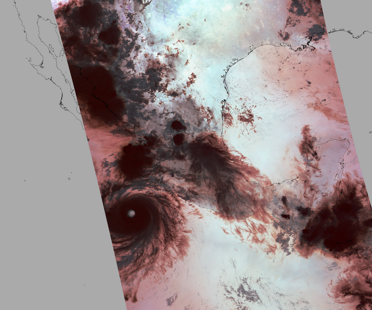 Nubosidad en el terreno:36% Nubosidad sobre México:44% Datos nulos en la escena:29% Datos nulos sobre México:8% |