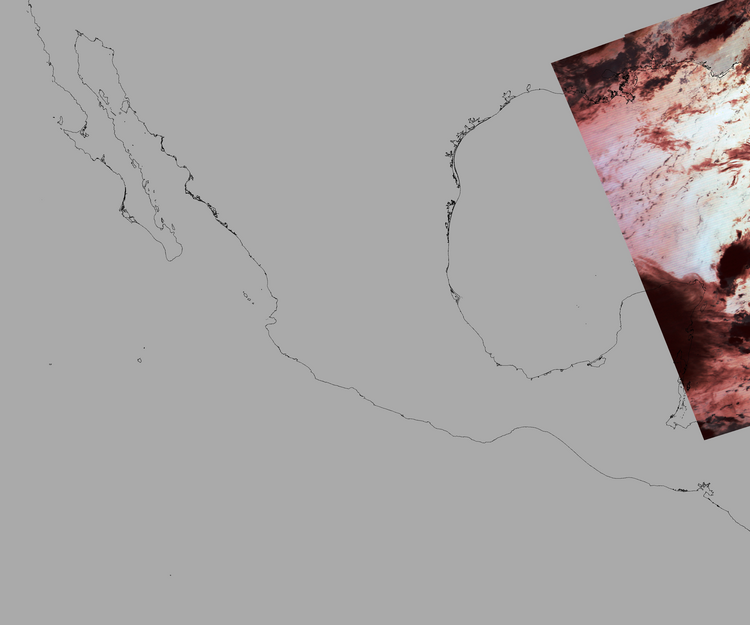 Nubosidad sobre el terreno:40% Nubosidad sobre México:94% Datos nulos en la escena:87% Datos nulos sobre México:97% |
