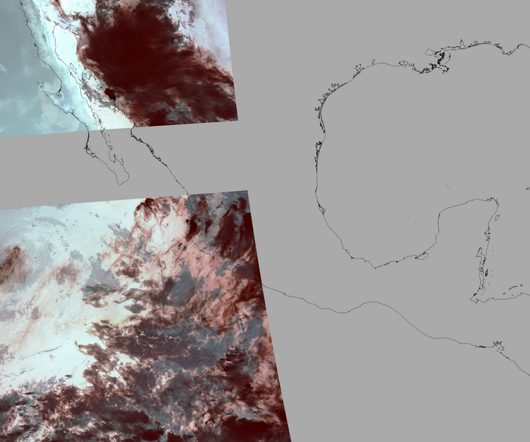 Nubosidad sobre el terreno:50% Nubosidad sobre México:53% Datos nulos en la escena:52% Datos nulos sobre México:48% |